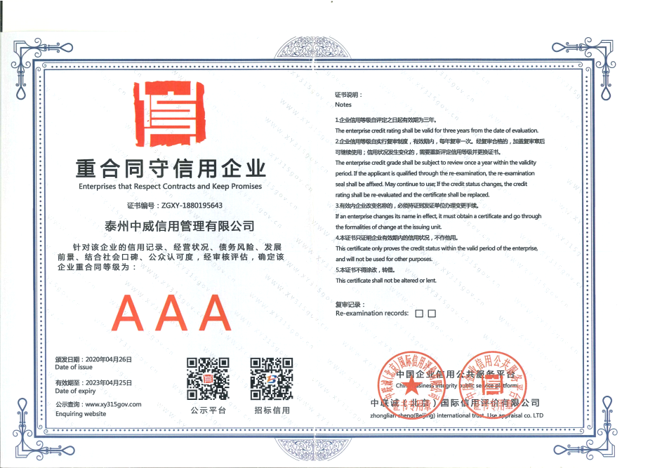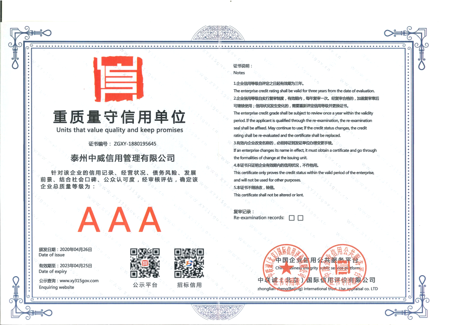 一、关于我们 中威信用管理(江苏)有限公司(以下简称:“公司”),成立于2016年6月,是按照现代企业制度组建的新型企业,主要从事为金融机构和其它信贷相关的企业和机构提供与信用评估及风险管理有关的现代化产品和服务。公司专注于金融债权管理与优化服务的专业催收机构。
